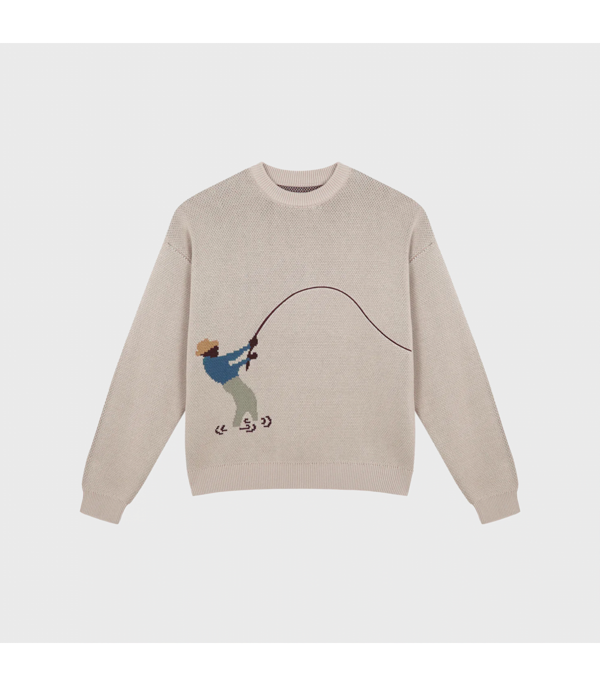 ● Ilustración de pescador en la parte delantera y trasera